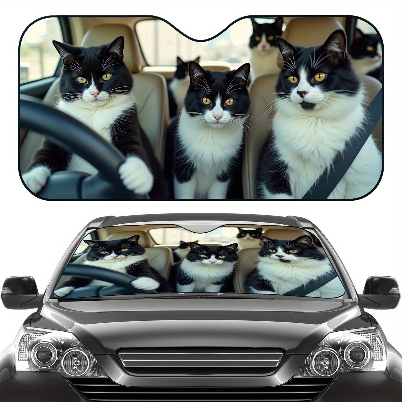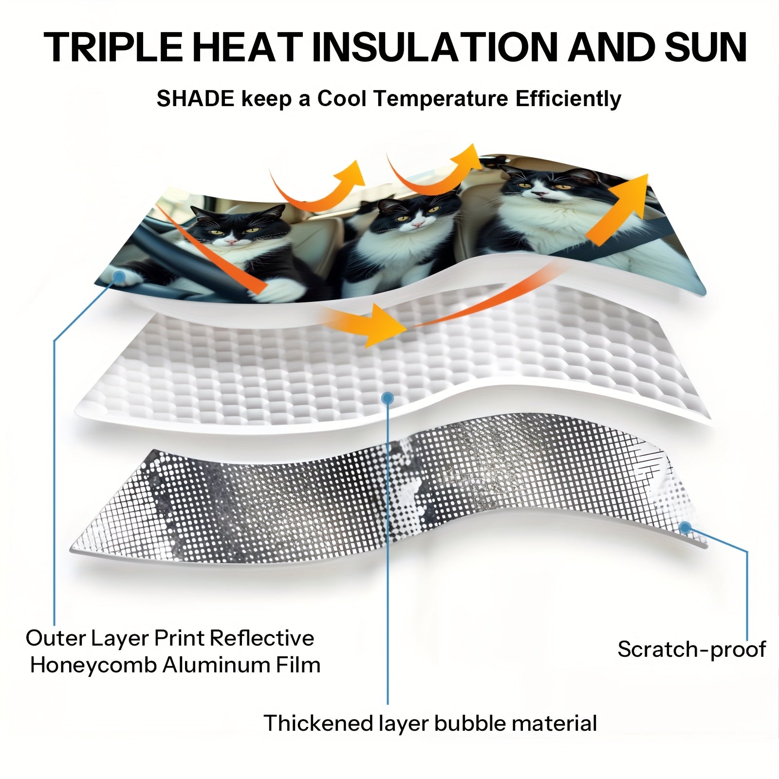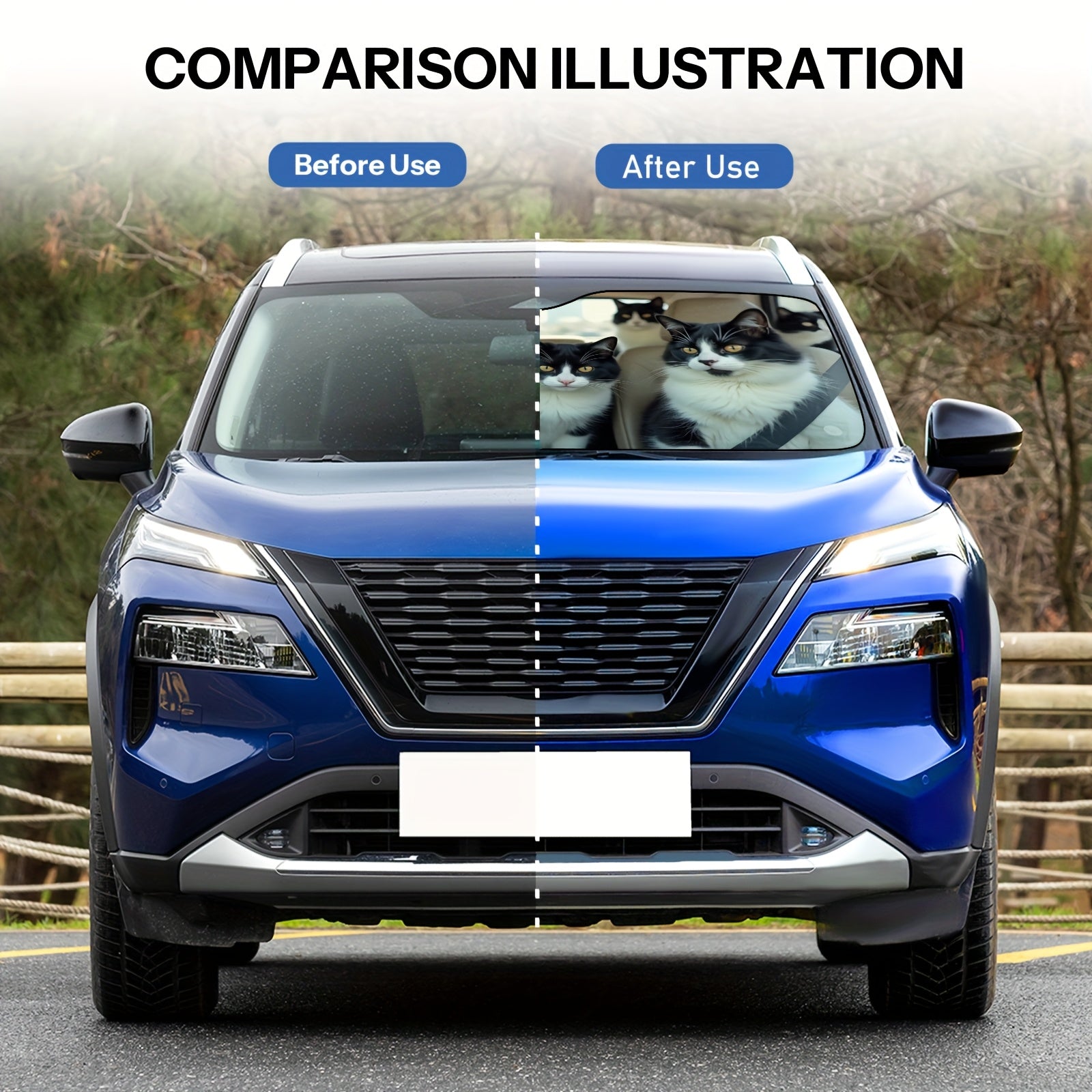 1pc Cat-Themed Windshield Sunshade - Foldable Car Sunshade with Surprise Cat Pattern, UV Protection & Heat Dissipation, Easy Installation for All Vehicles, Heat Dissipation Shade | Cat Lover Gift | Durable Sunshade